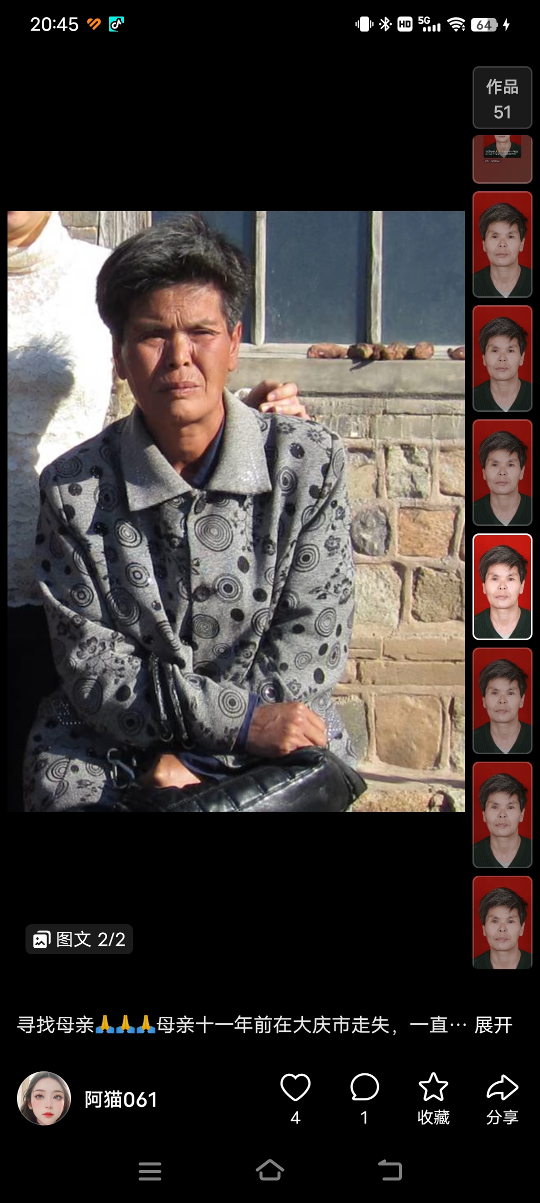 正文 失踪人员:杨凤金 admin V管理员 /昨天/1.06 K阅读/0评论 0317 失踪人员:杨凤金 (寻亲网编号:10633) 基本信息: 姓 名:杨凤金 性 别:女性 出生日期:195012 失踪日期:2012 失踪地点:黑龙江省大庆市 失踪时身高:160 联系方式:13504593723 详细介绍: 偏瘦,有精神问题 信息图片: 寻人启事资料、照片等均由用户提供,如侵犯任何第三人肖像权、隐私权或其他合法权益,请联系本站删除!